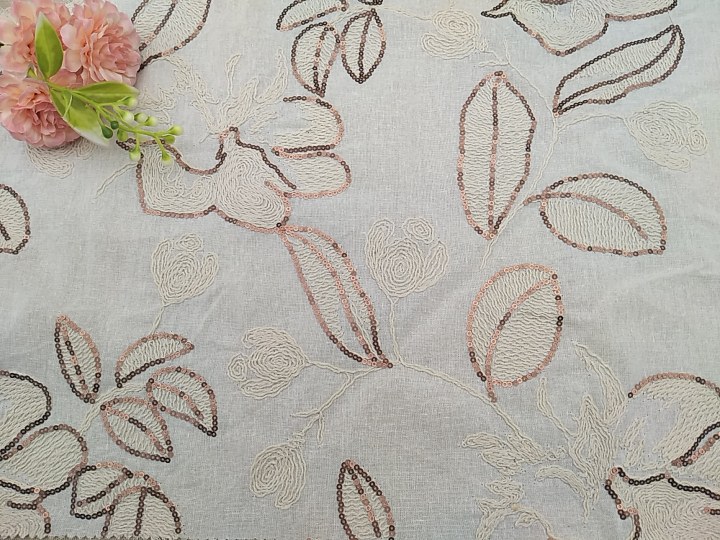 珠片绳绣刺绣棉布面料